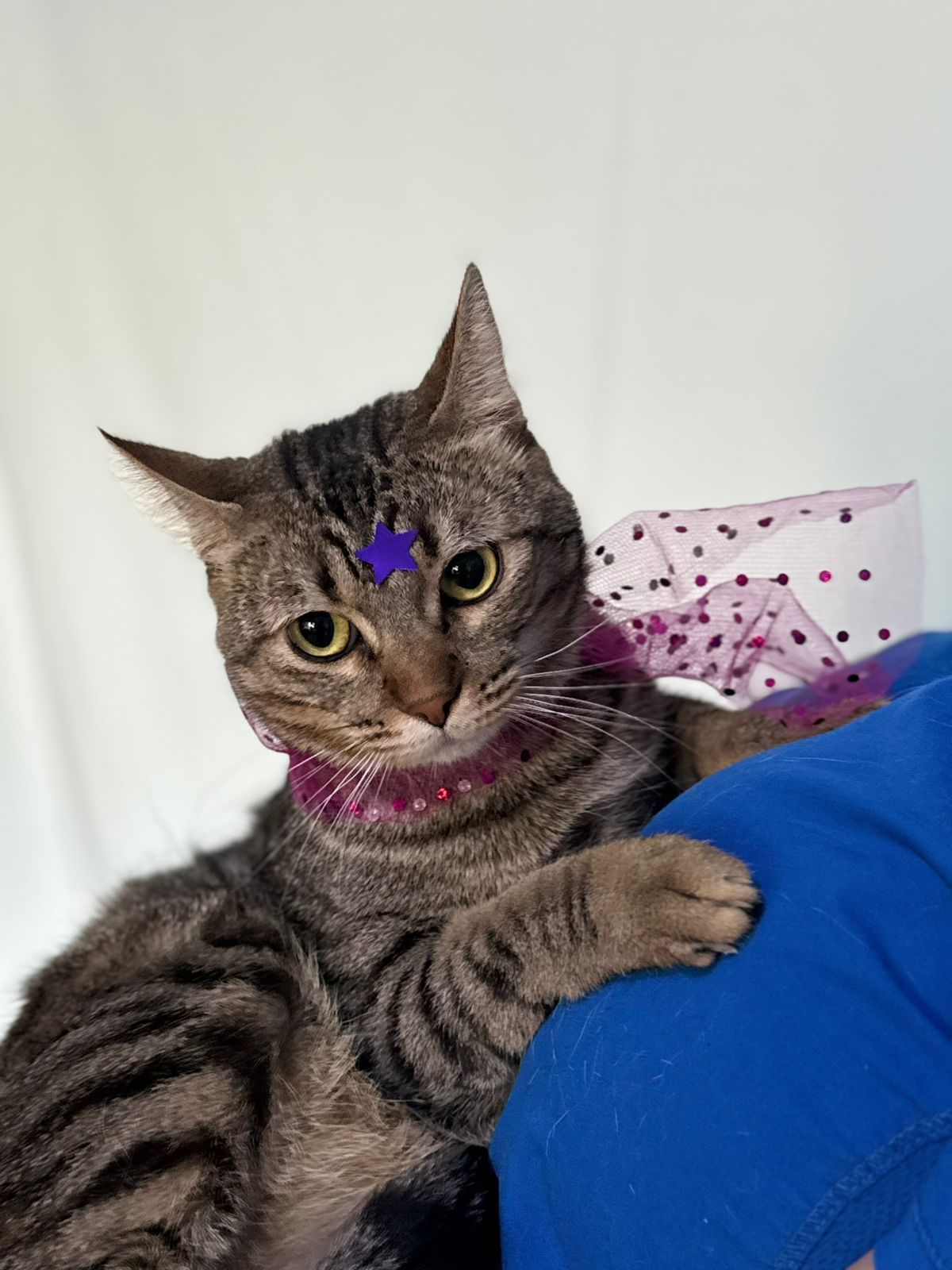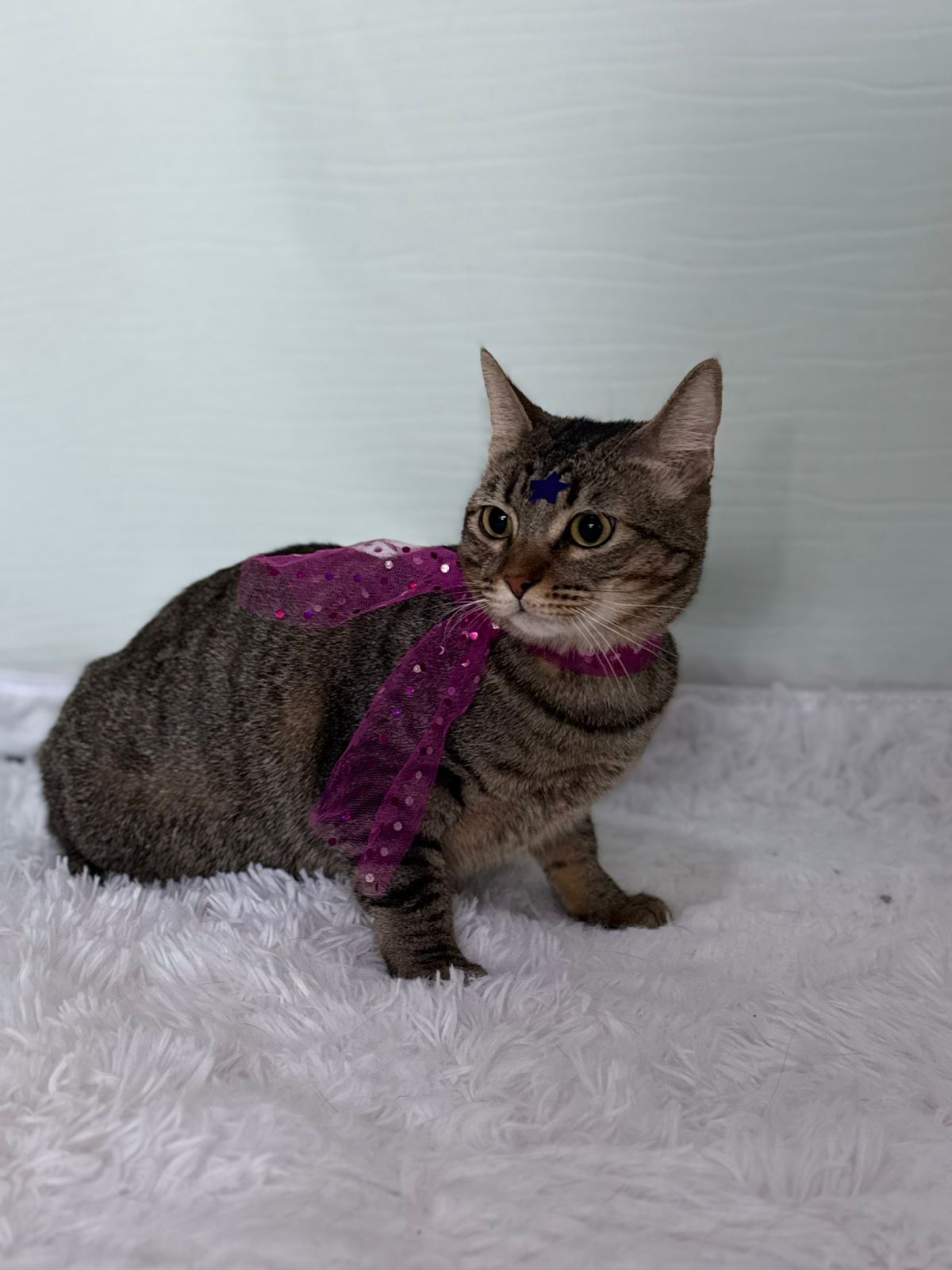 Historia: ¡Hola! soy Petunia, fui rescatada de un estacionamiento donde mi antigua familia fue a abandonarme porque ya no era una bebecita. Estando ahí sobreviví gracias a las personas que me llevaban sobres, ya que no se cazar muy bien pues siempre me daban de comer en mis platitos... mis almohadillas comenzaron a quemarse debido al sol y entonces descubrí que escondiéndome en los cofres de los coches podía evitar el dolor. Un día fui rescatada ya que muchas veces estuve a punto de morir debido a mis escondites, hoy ya soy toda una princesa de nuevo, con sus vacunas, esterilizada, limpia y con mucho amor para dar. Me gusta jugar con mas michis pero a los perritos les tengo mucho miedo. ¿Te gastaría conocerme?